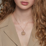 Aurora is the sun, a fierce lioness with diamond eyes... The perfect necklace to guide you towards the horizon you always dreamed of. Aurora will light the way while watching your back.