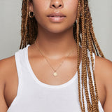 These necklaces are adorned with the universal zodiac sign. They are all hand-drawn by our beautiful friend and artist, Kaïa Etezadi for Deux Lions Jewelry.