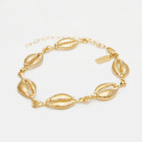 Handcrafted from real seashells and cast into gold to make this one-of-a-kind bracelet, which can also be worn as an anklet.