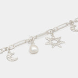 Our Solenn Bracelet was inspired by an old 70’s necklace found in a vintage market. The perfect mix of costume jewelry and the spiritual love from that era. The chain was crafted taking into account nature's wild beauty and raw, imperfect textures. While most chains are machine made, each link of this necklace was handmade individually, and the pearl charms are removable. A bold and timeless piece that compliments any outfit from jeans and a t-shirt to a minimal silk dress, and perfect for layering.