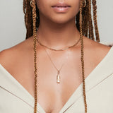This golden combo is styled and ready to wear. The perfect layered look, for daytime at the beach right into the night in the big city. Inspired by rustic and handcrafted treasures from the past, this combo is already styled perfectly just for you. We did the work for you- the chains are bound together for a permanent layered look. Made with love.