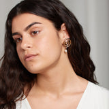 The Sacred Spiral is an ancient symbol of birth & rebirth. The earrings are a movement of personal power adorned with a pearl tear, which represents the beauty and strength of vulnerability. A bold and elegant addition to any outfit under the sun right into the night city lights.