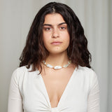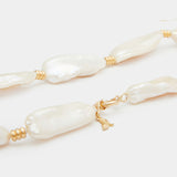 Our Isabella Necklace was inspired by nature's wild beauty and raw, imperfect textures. An impressive piece with tiny golden beads we crafted between genuine baroque pearls, celebrating the unique perfection of asymmetry found within nature. A bold and timeless piece that can be layered with other chains or worn alone for a jaw dropping fashion moment worthy of a queen.