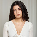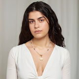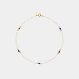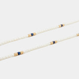 Our Olivia Necklace is made up of tiny golden beads we crafted, bringing together genuine Lapis Lazuli and Keshi freshwater pearls for the perfect layering piece. Lapis Lazuli is a very strong stone, a symbol of the night sky and a magnet for wisdom and courage. A cute staple for everyday wear, or an evening under the stars. Available with or without our Freya Charm.