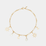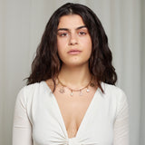 Our Solenn Necklace was inspired by an old 70’s necklace found in a vintage market. The perfect mix of costume jewelry and the spiritual love from that era. The chain was crafted taking into account nature's wild beauty and raw, imperfect textures. While most chains are machine made, each link of this necklace was handmade individually, and the pearl charms are removable. A bold and timeless piece that compliments any outfit from jeans and a t-shirt to a minimal silk dress, and perfect for layering.