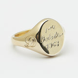 This chunky signet ring is the perfect mix between elegance and bold. We suggest engraving a special date on the front of it to make it unique and meaningful. Embossed with our DL on the sides, we also incorporated our classic lion design on the inside to make this ring one of a kind.
