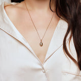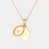A nostalgic locket-style necklace that twists open to reveal a secret engraving of your choice. This vintage mirror-shaped pendant is adorned with a diamond on one side, and a simple polished surface on the other. Handcrafted especially for you and made with love, you can choose to engrave initials or a special date inside (not apparent when worn) or on the outside surface.
