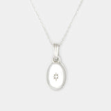 A nostalgic locket-style necklace that twists open to reveal a secret engraving of your choice. This vintage mirror-shaped pendant is adorned with a diamond on one side, and a simple polished surface on the other. Handcrafted especially for you and made with love, you can choose to engrave initials or a special date inside (not apparent when worn) or on the outside surface.