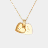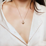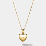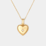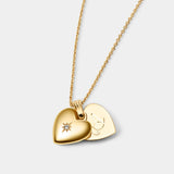 A nostalgic locket-style necklace that twists open to reveal a secret engraving of your choice. This heart-shaped pendant is adorned with a diamond on one side, and a simple polished surface on the other. Handcrafted especially for you and made with love, you can choose to engrave initials or a special date inside (not apparent when worn) or on the outside surface.