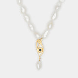 Inspired by the powerful female goddesses from ancient Egypt, the Ayla is forever looking out for you. Made of Genuine baroque pearls. The golden handcrafted eye of Horus is carefully painted in resin and adorned with a tear of joy made from a naturally shaped freshwater pearl.