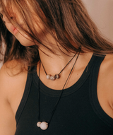The Ellie necklace is adjustable with a sliding bead as the clasp. This means you can wear it as a choker, or longer for a transition from the 90s nostalgia back to the hippie goddesses of the 70s.